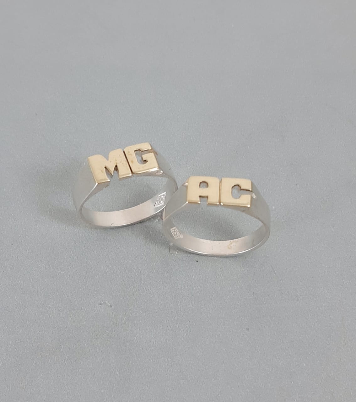 ANILLO DOBLE INICIAL CHICO PLATA 925 Y DUBLEE. SE HACE POR PEDIDO. CON CERTIFICADO ESCRITO