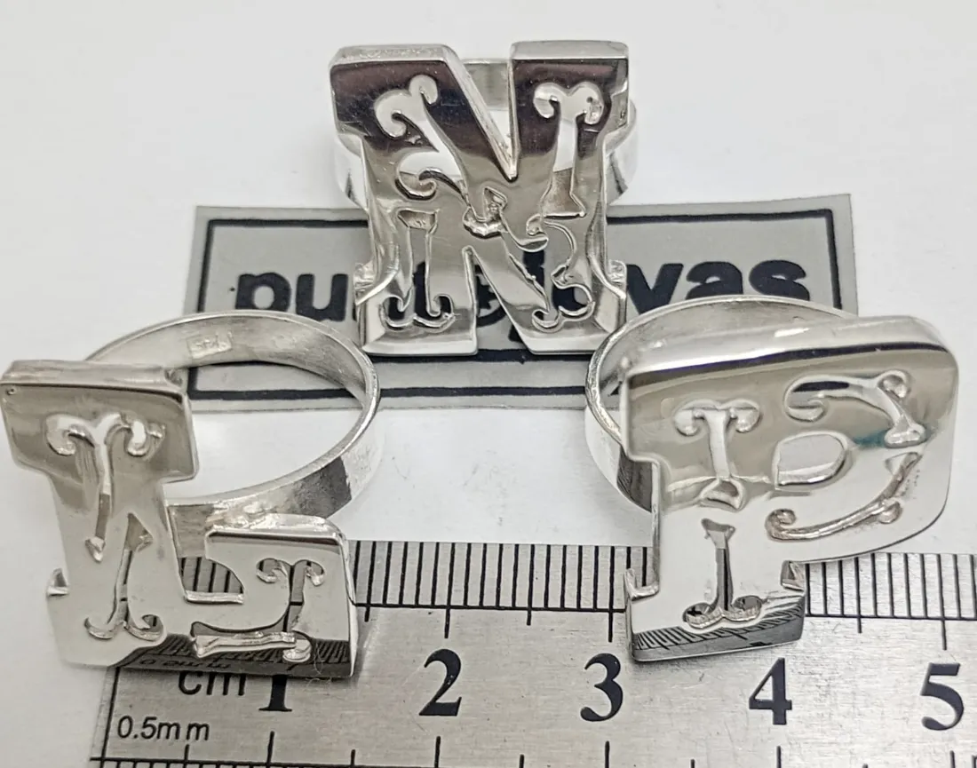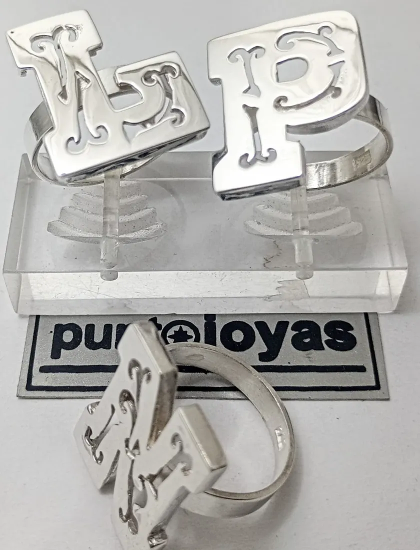 Anillo Inicial Extra Grande Calado. PLATA 925. Se hace en todas las Iniciales. Se hace en todas las medidas.