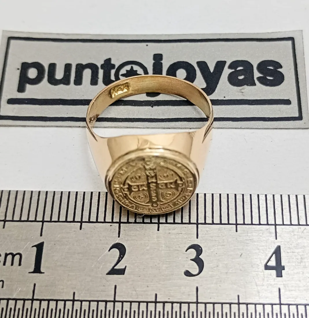 ANILLO SELLO REDONDO CON IMAGEN SAN BENITO( AMBOS LADOS) ORO 18 K. PESO 3 GRS APROX. CERTIFICADO ESCRITO
