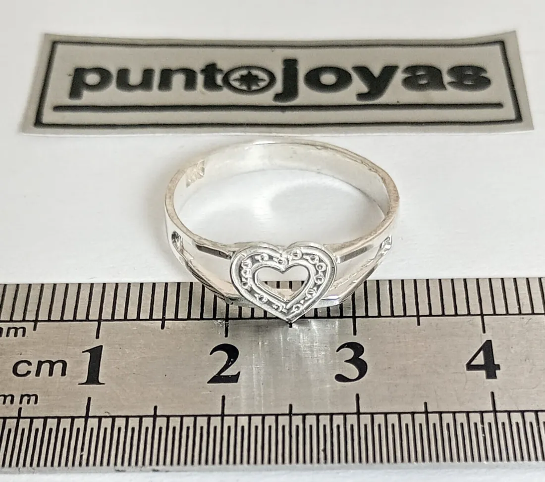 Anillo cuerpo abierto corazón grabado. PLATA 925. Se hace en todas las medidas.