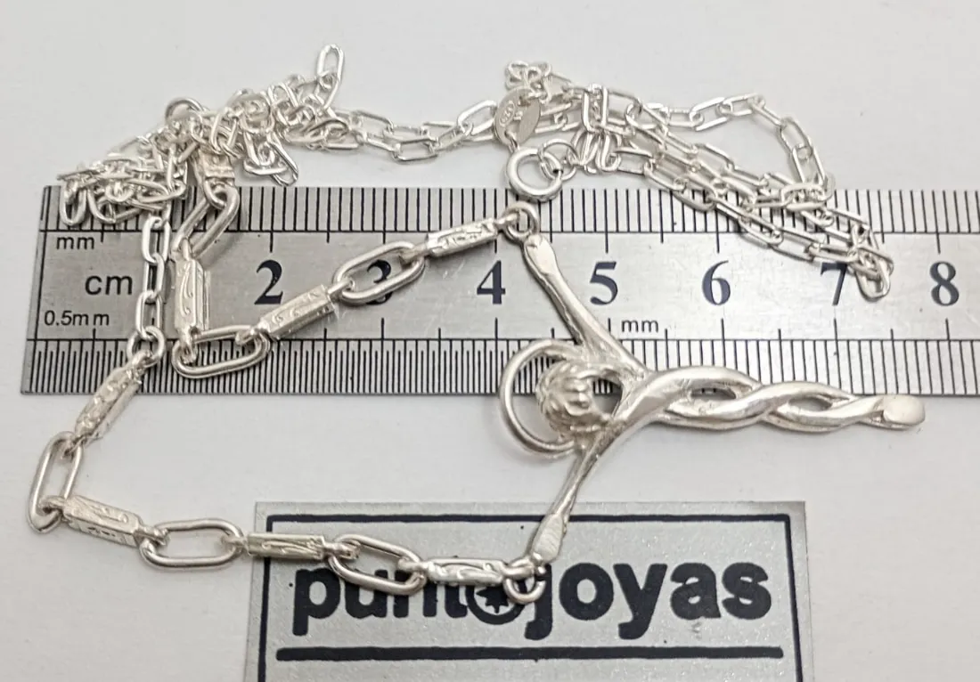 Conjunto Cristo Dalí Calado con detalle de eslabón Roma. PLATA 925. Medida : 60 Cm. largo