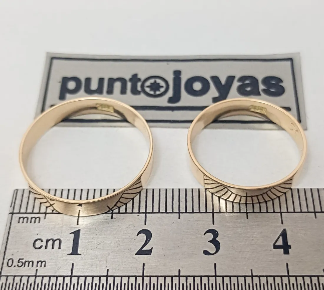 PAR DE ALIANZAS ORO 18 K REALIZACION INTEGRA HECHA A MANO MODELO CINTA PESO APROX: 4 GRS , EL PAR INCLUYE GRABADO Y CERTIFICADO ESCRITO