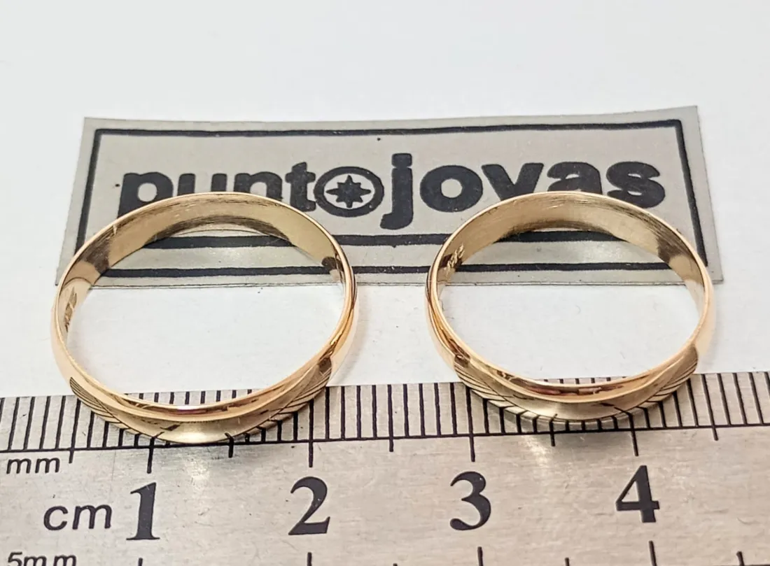 PAR DE ALIANZAS CLASICAS PESO POR PAR : 4 GRS ANCHO; 3,5 MM GRABADO INCLUIDO CERTIFICADO ESCRITO HECHURA A MANO