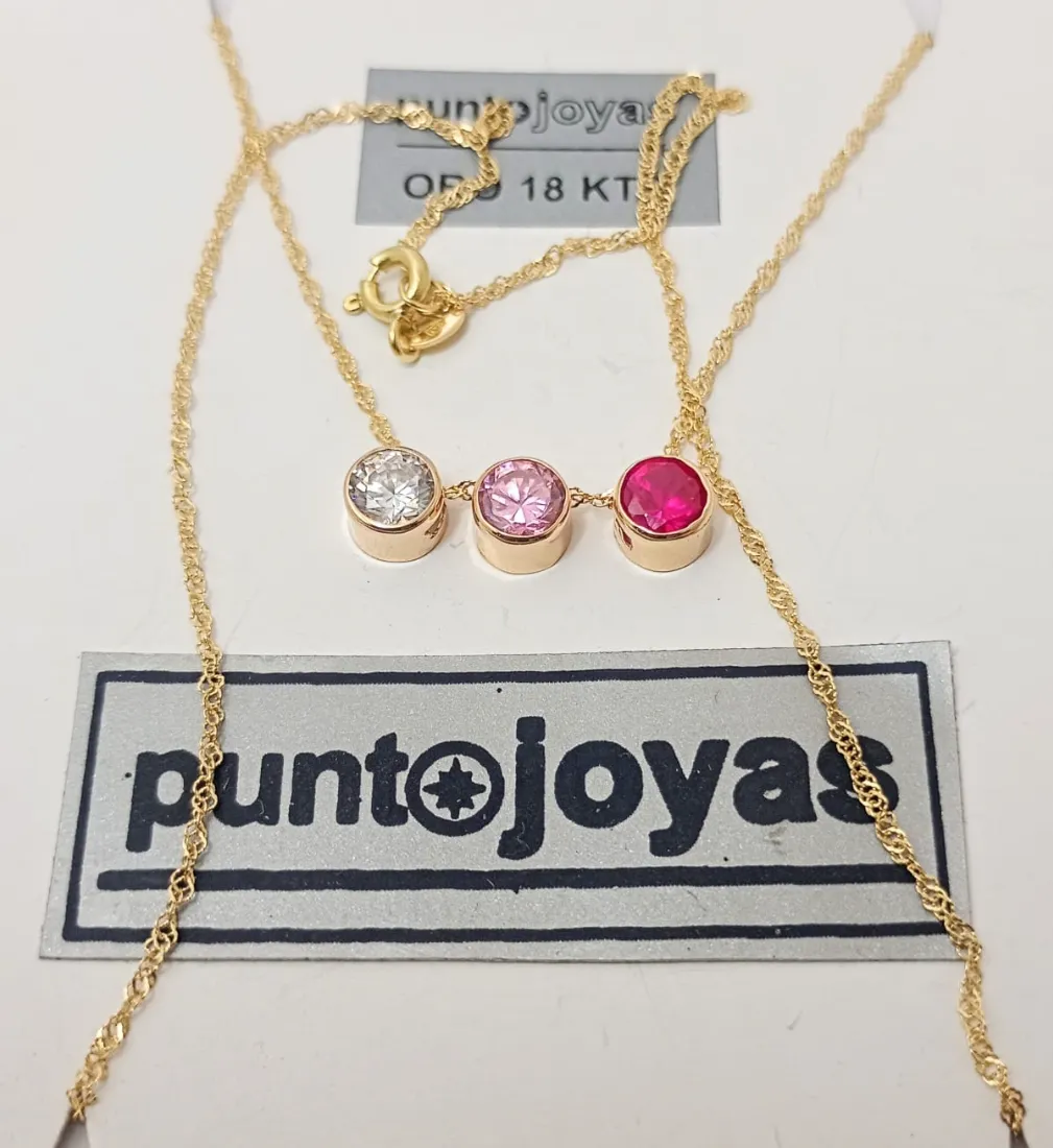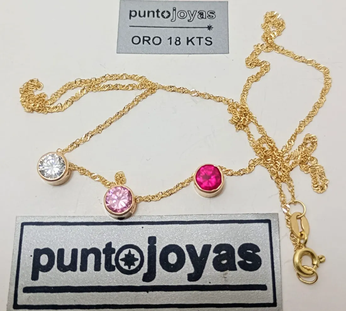Conjunto cadena y Susanos Mix. ORO 18 K. Peso aprox : 2 gr. Color de Piedras a Elección.